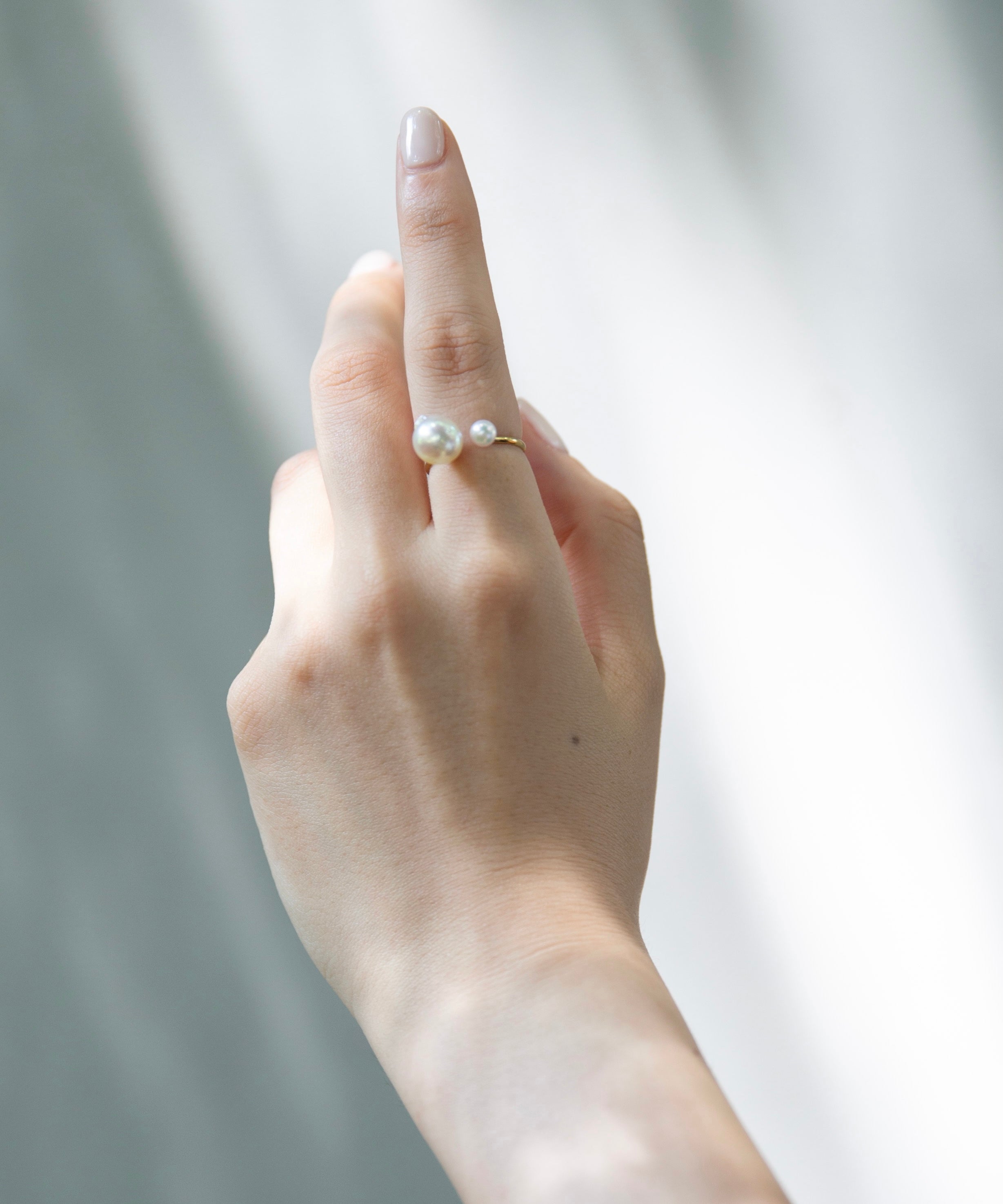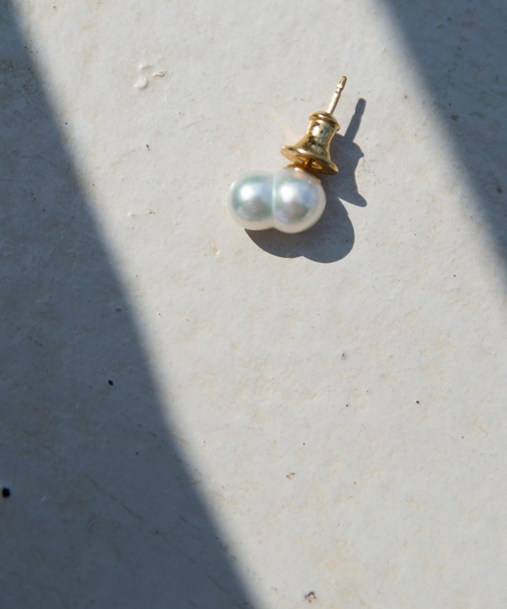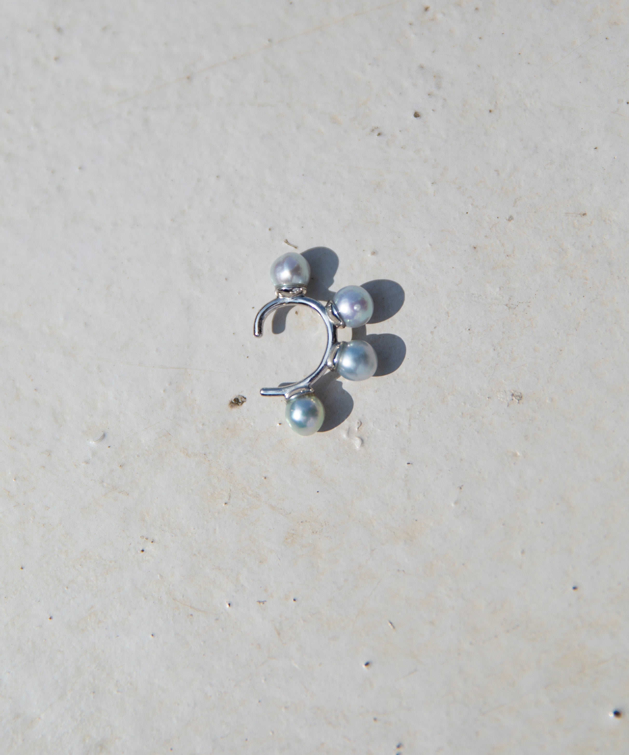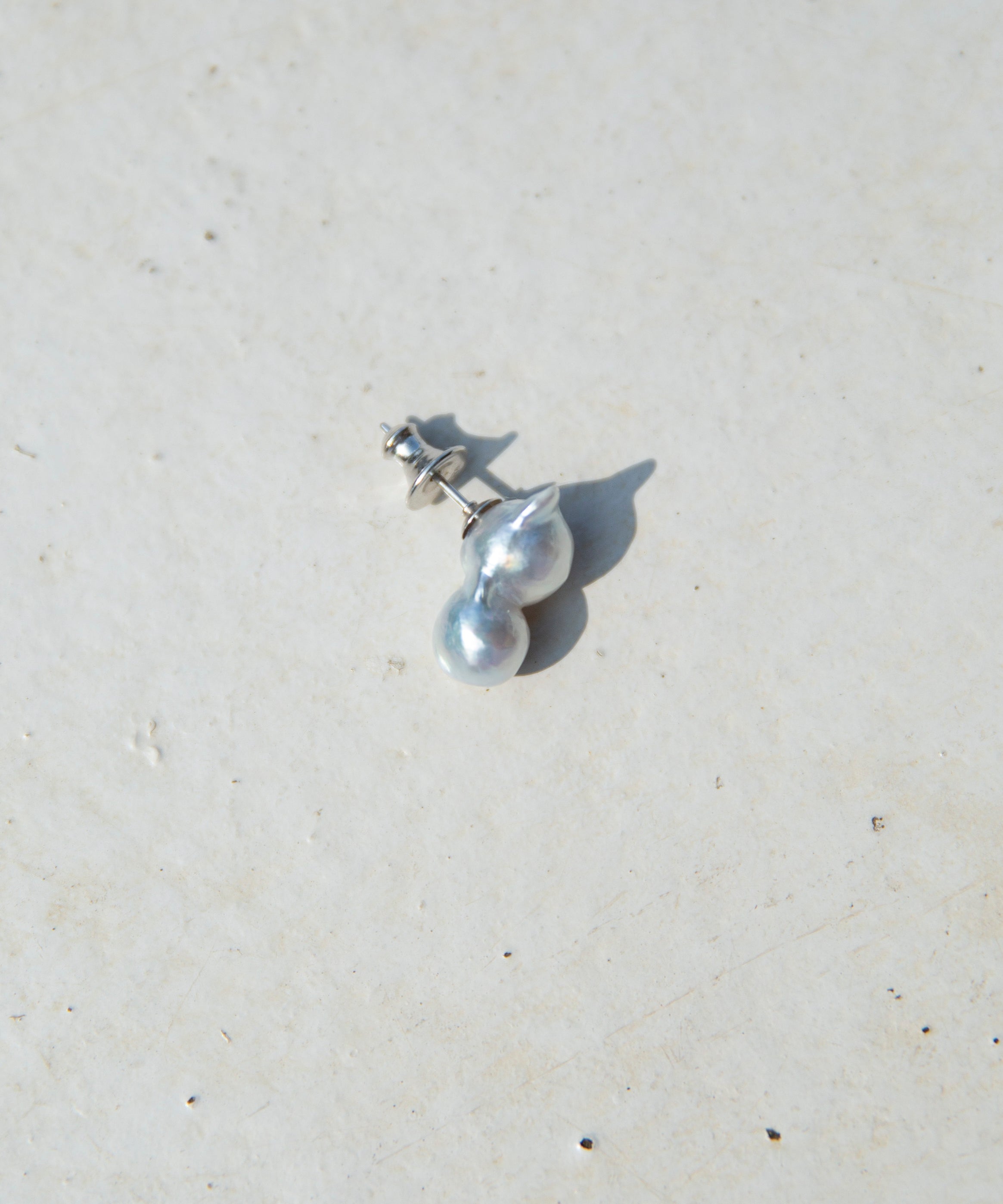 海洋汚染問題などにより、年々収穫量が減少しているアコヤパール。愛媛県で採れた真丸ではない、一粒ずつ異なる変形アコヤパールを使用したジュエリー。