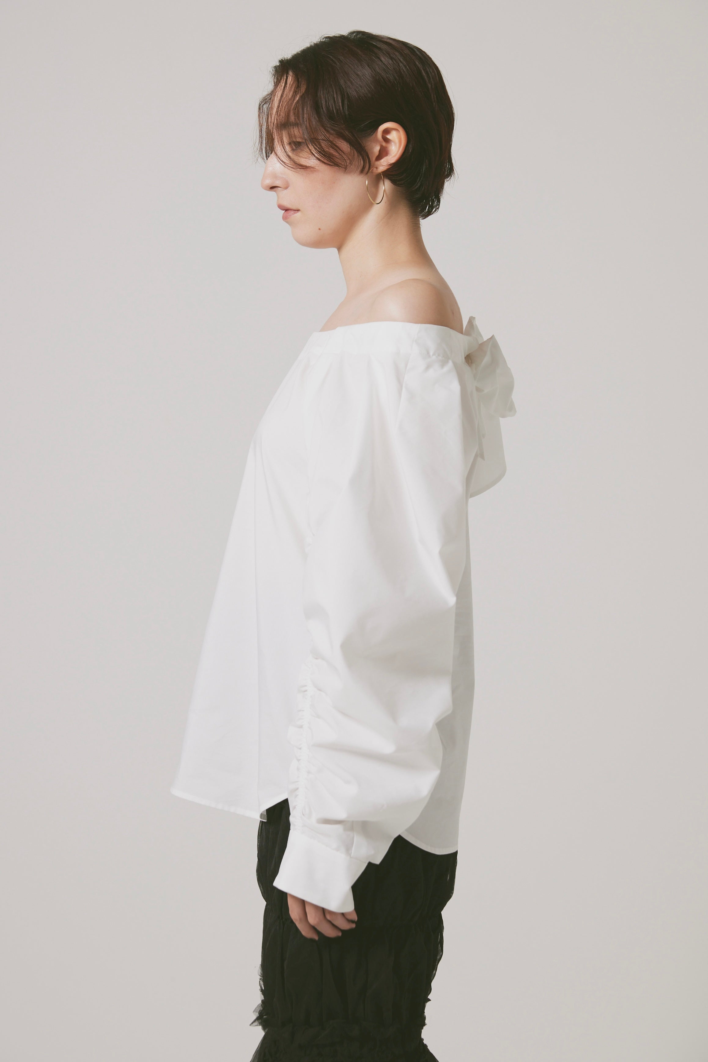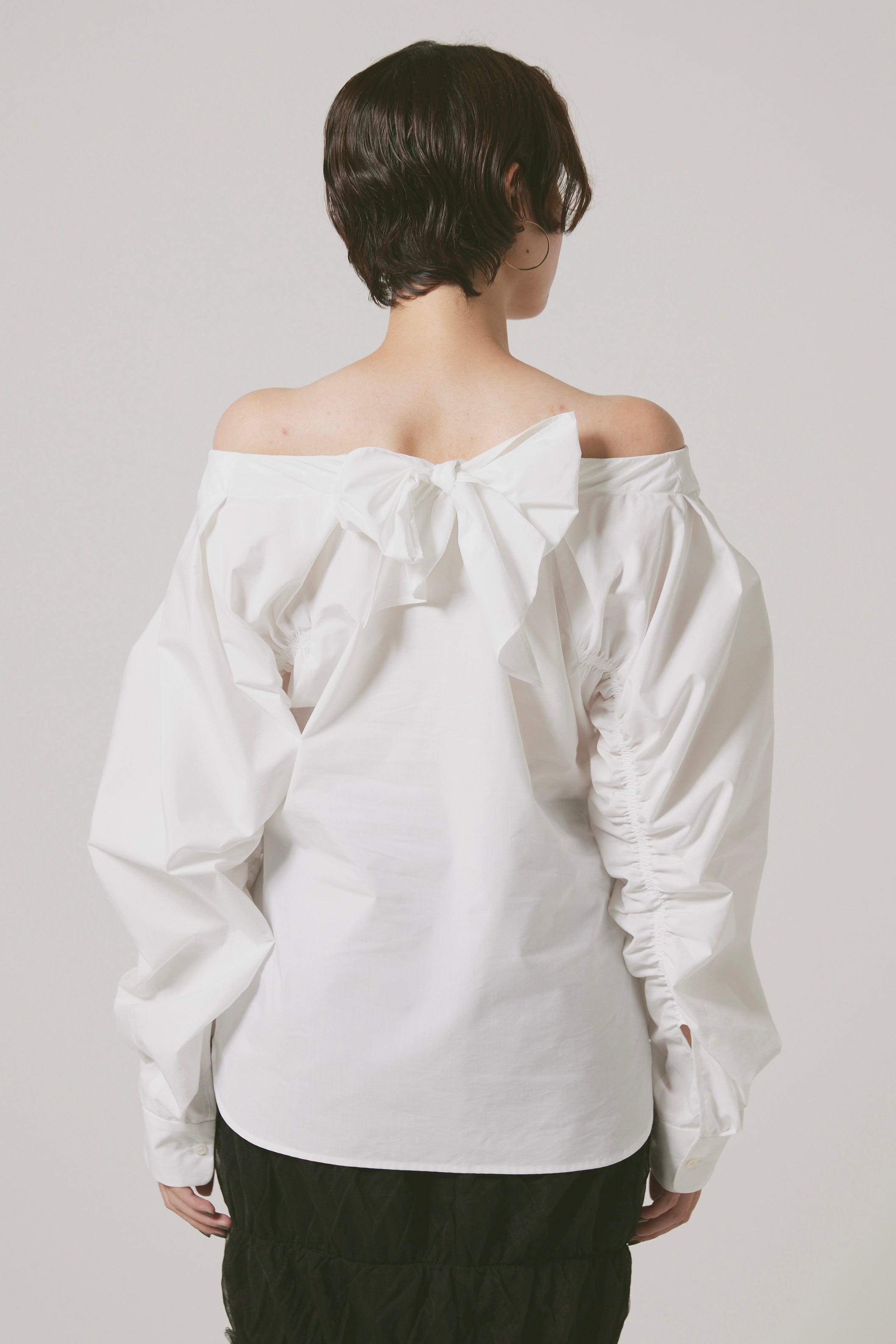 ボディがさりげなくシェイプされているので、ボトムスインでもアウトでもすっきりご着用頂けます。シックなボウタイブラウスからカジュアルなオフショルダーまで、リボンの結び方でアレンジも可能。前後逆でも着用できるので、表情ががらりと変わります。