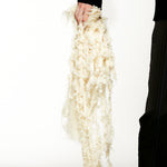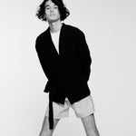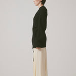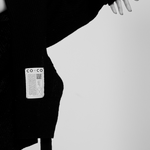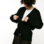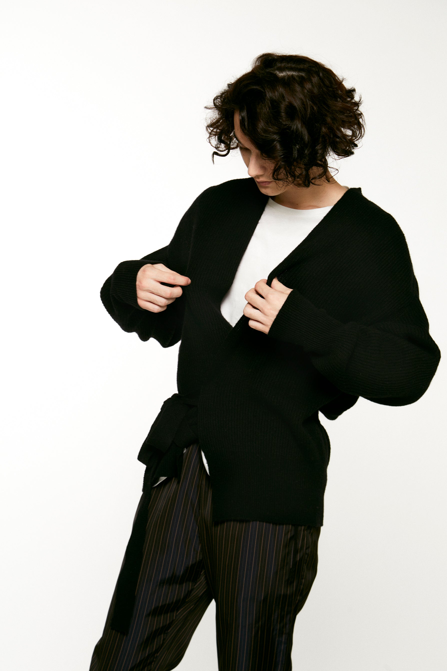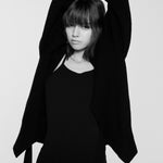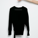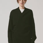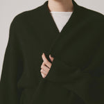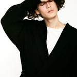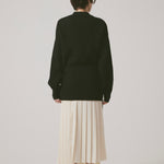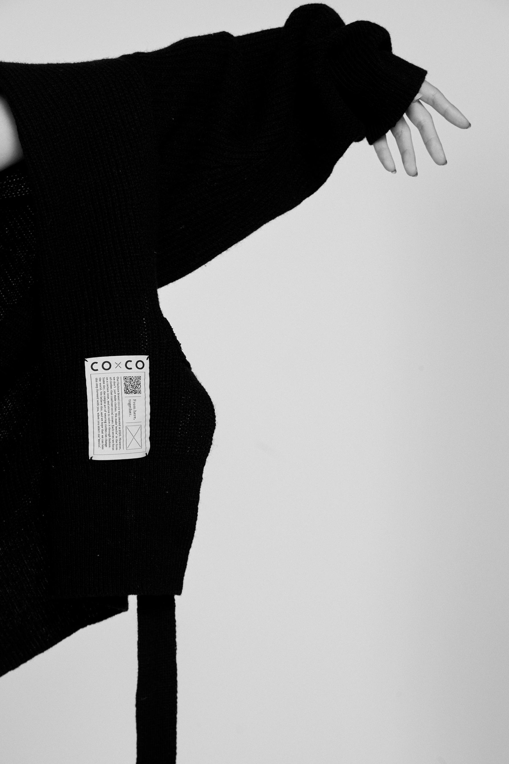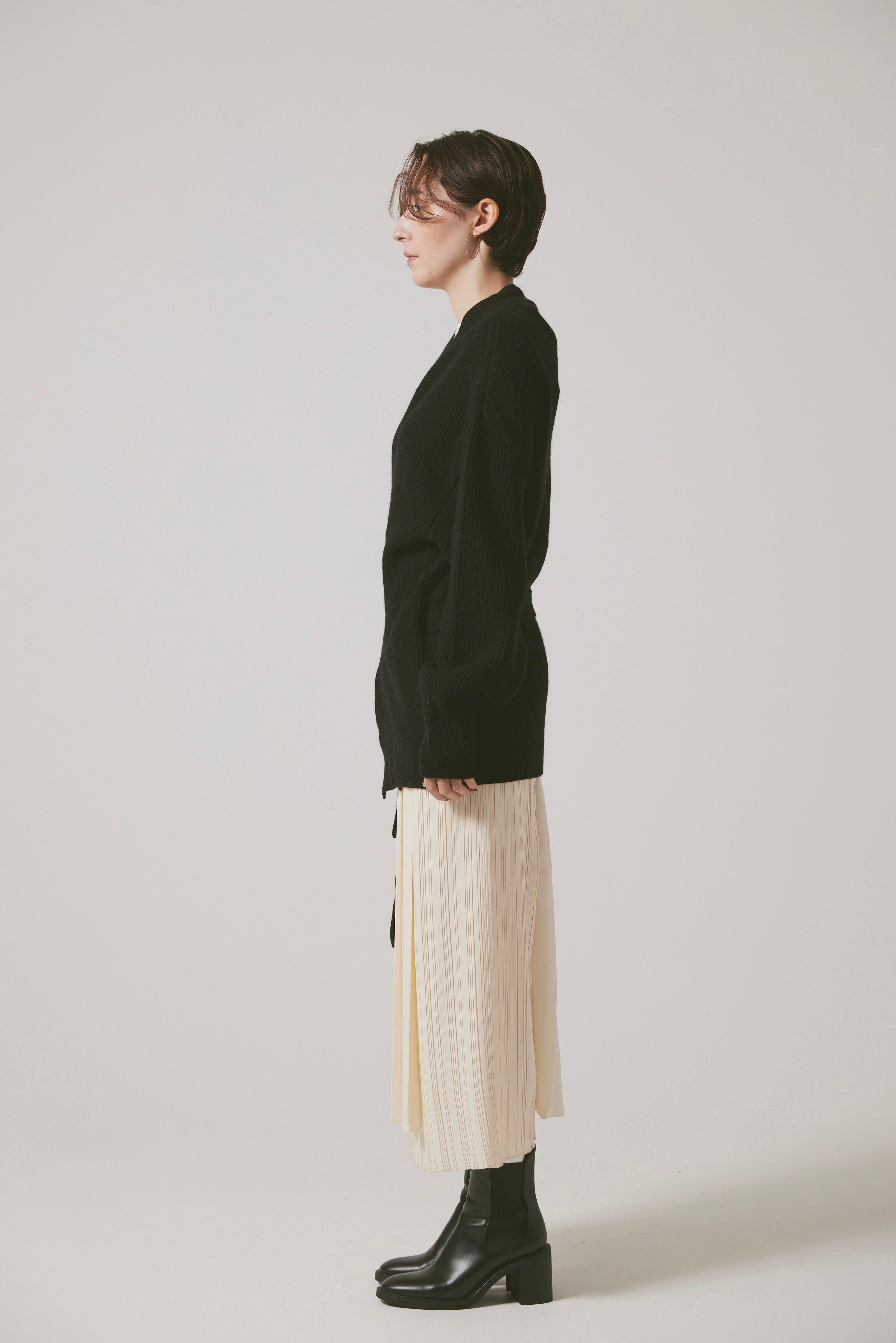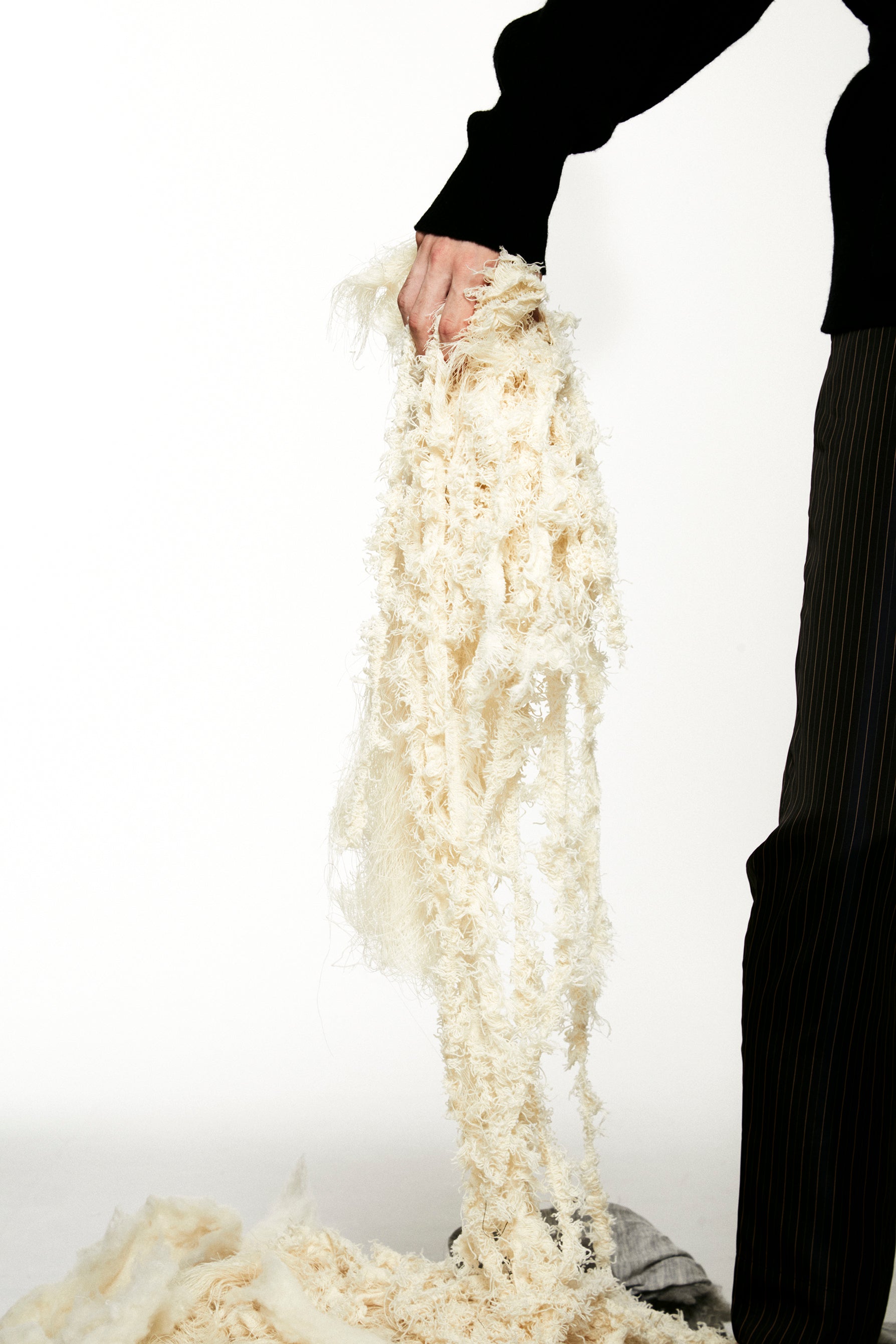 「反毛」と言われる、糸の裁断クズや糸くず、古着などを反毛機・割糸機などで処理しアップサイクルして作られた素材を使用。裁断クズは年間約12万トンが排出されていると言われており、本来ならば廃棄される予定だった裁断くずを有効活用した、循環型のニット。ベルトの通し方で幾通りにもアレンジ可能です。
