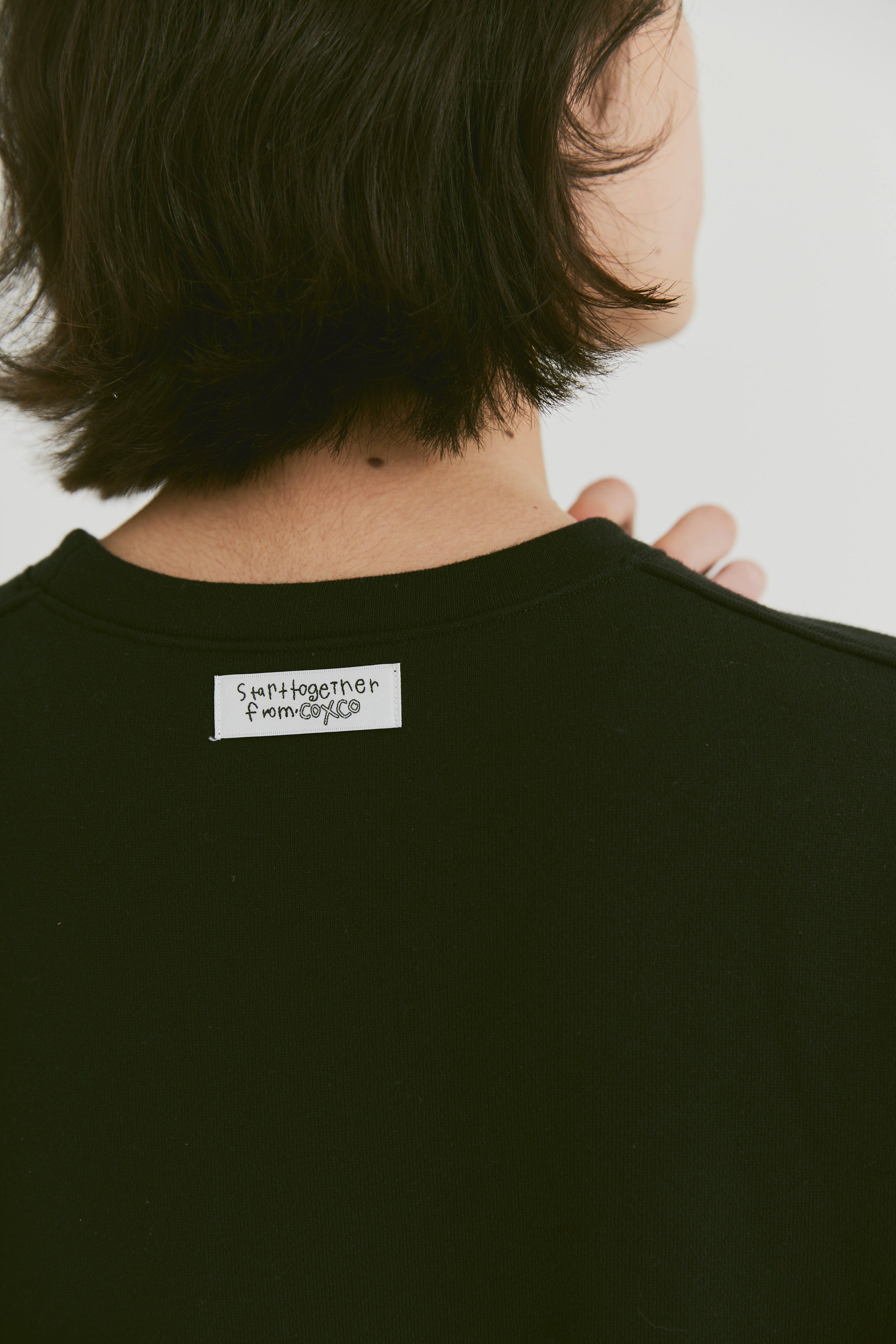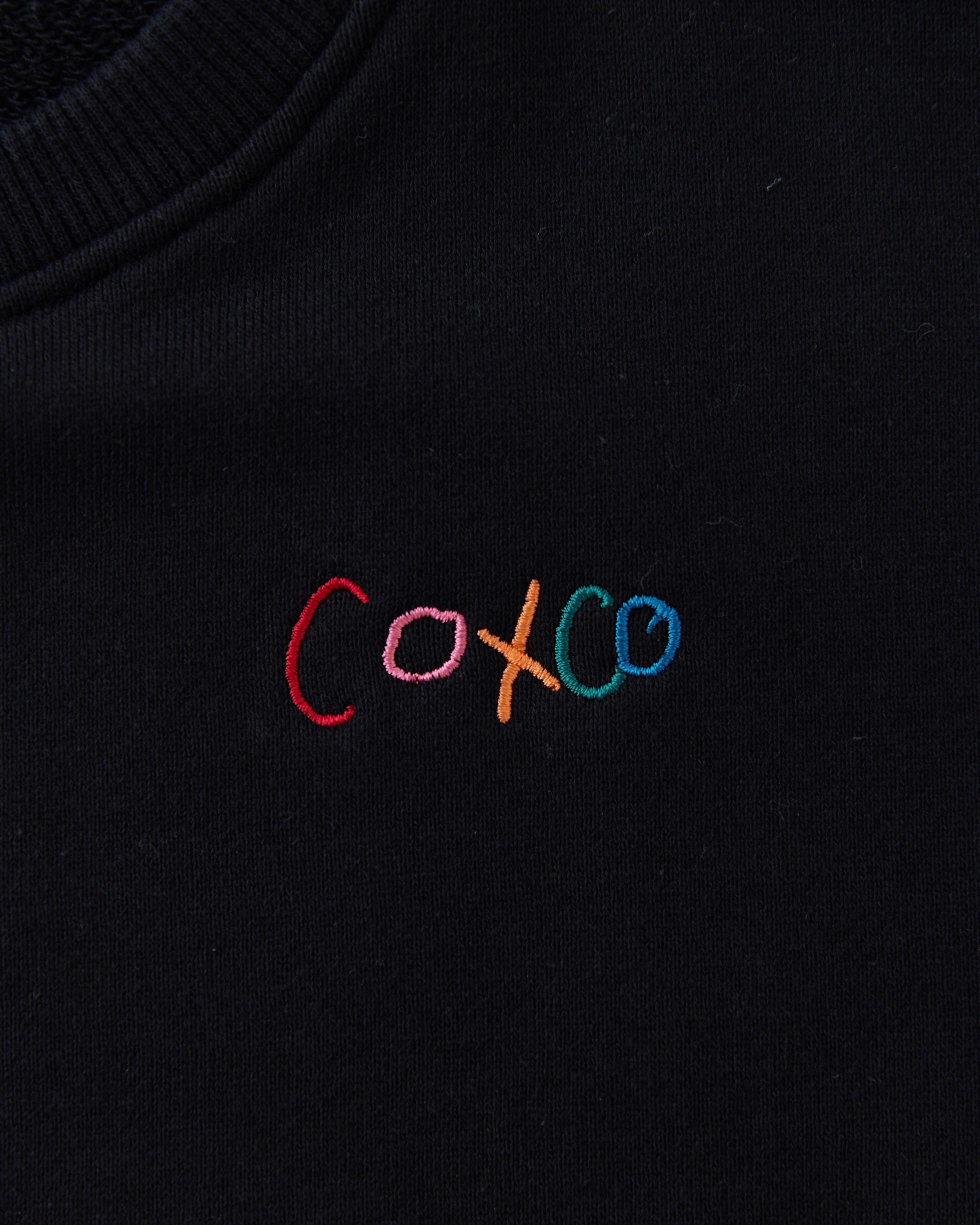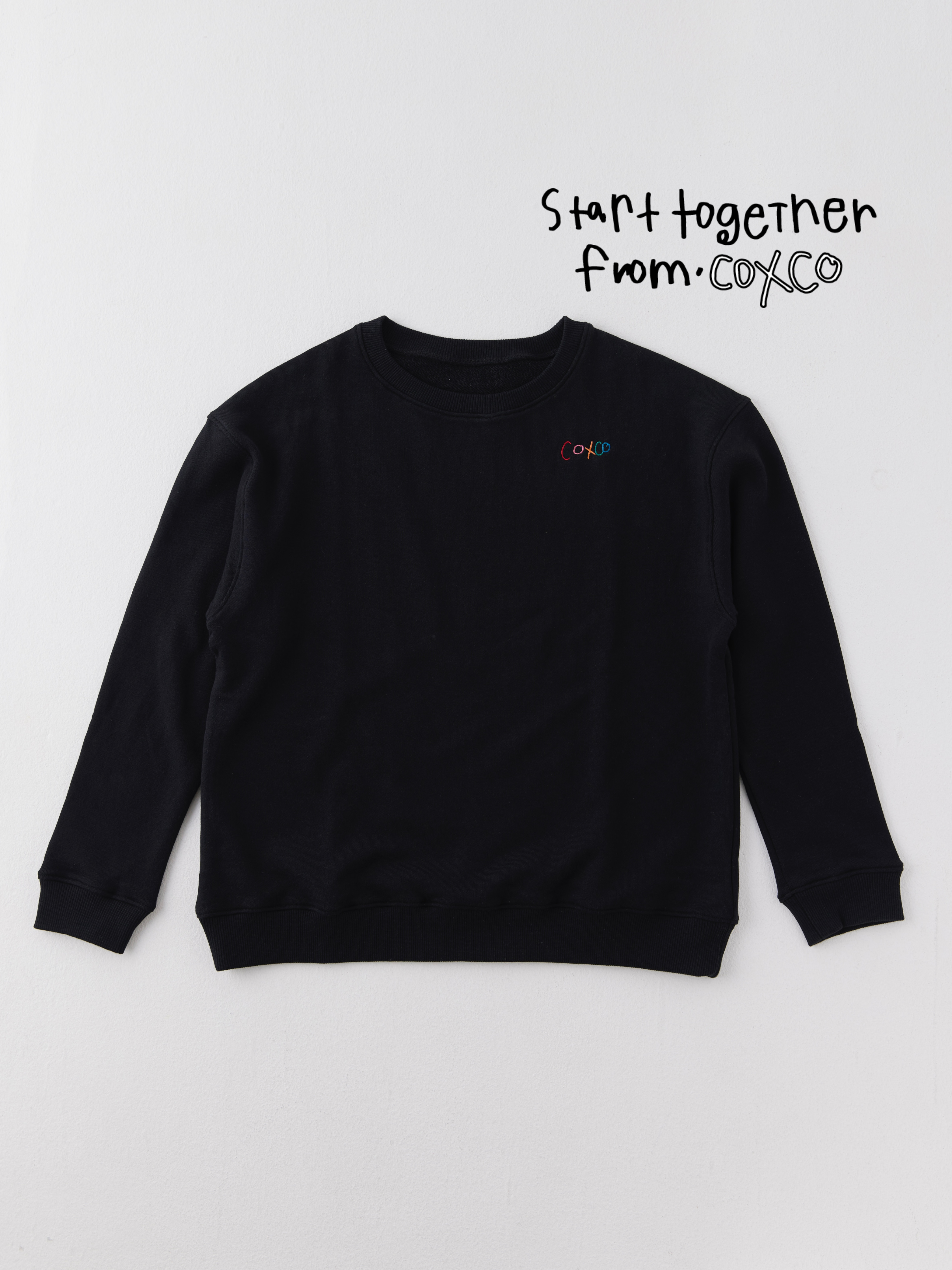オーガニックコットン100%のやさしい肌触りに、どんなシーンでも活躍するプルオーバー。左胸に生地と同色の「coxco」刺繍と、背中のタグがポイントのアイテムです。刺繍とタグの文字は、連携NPO団体「DEAR ME」でサポートしているフィリピンの女の子によって描かれています。
