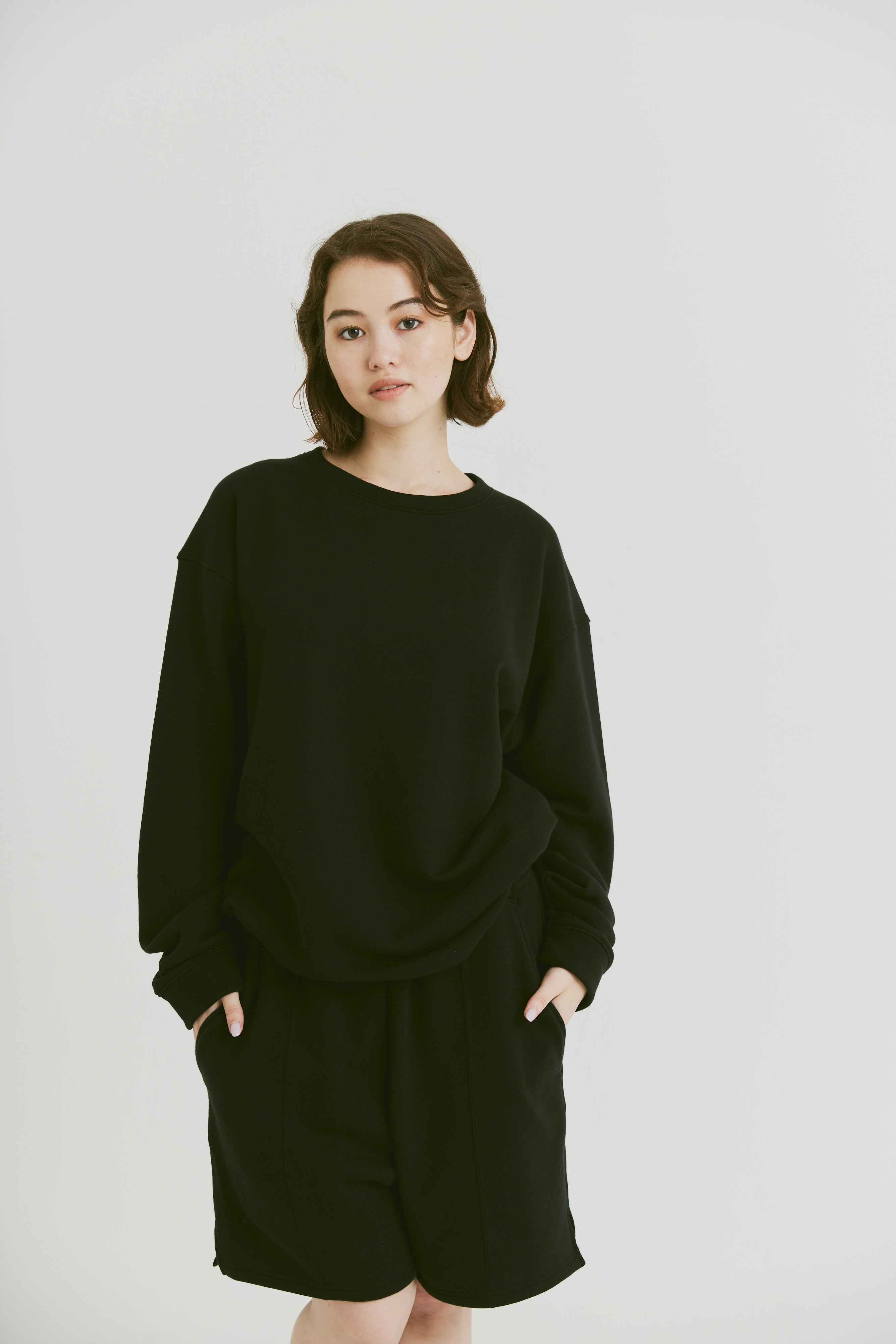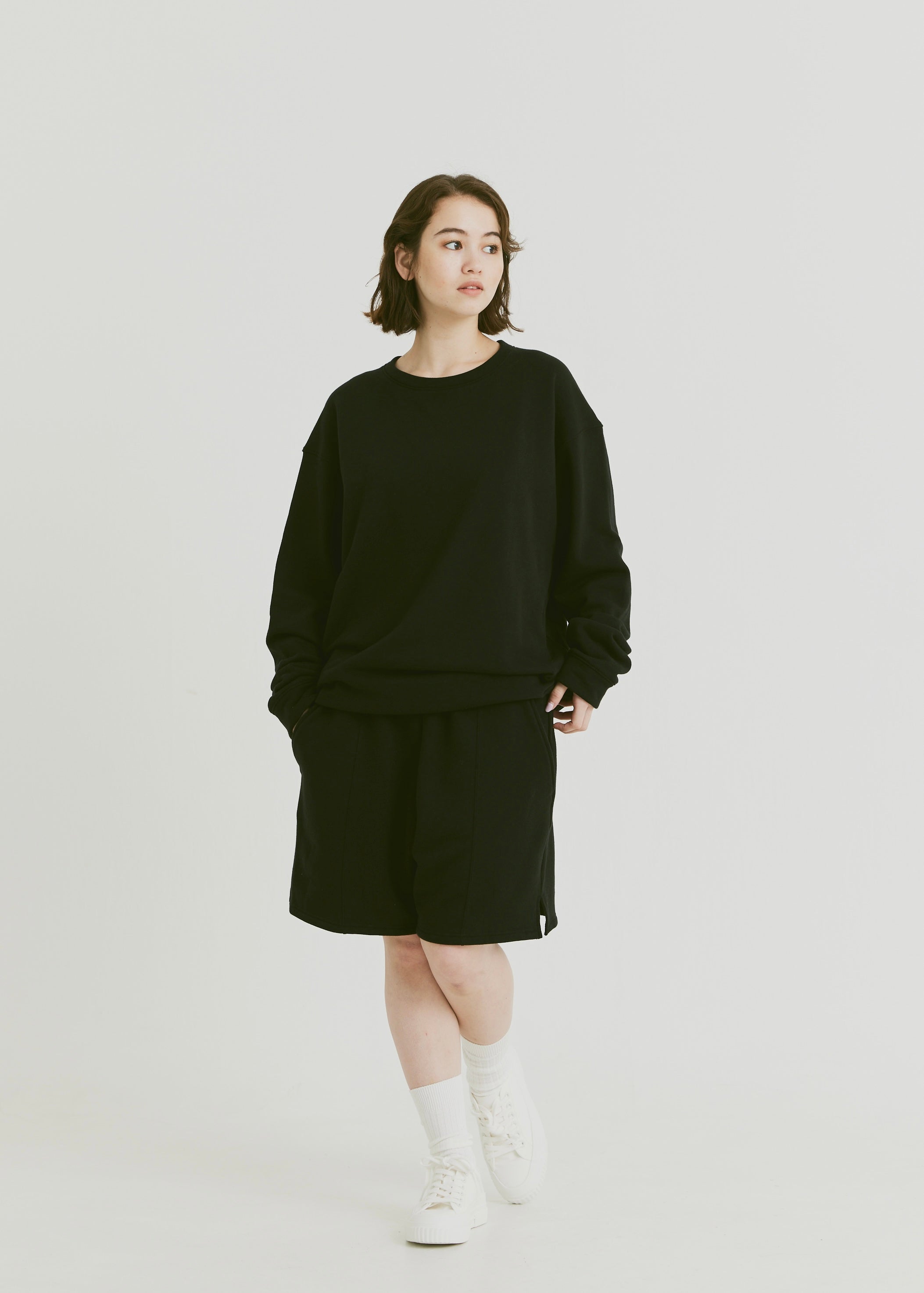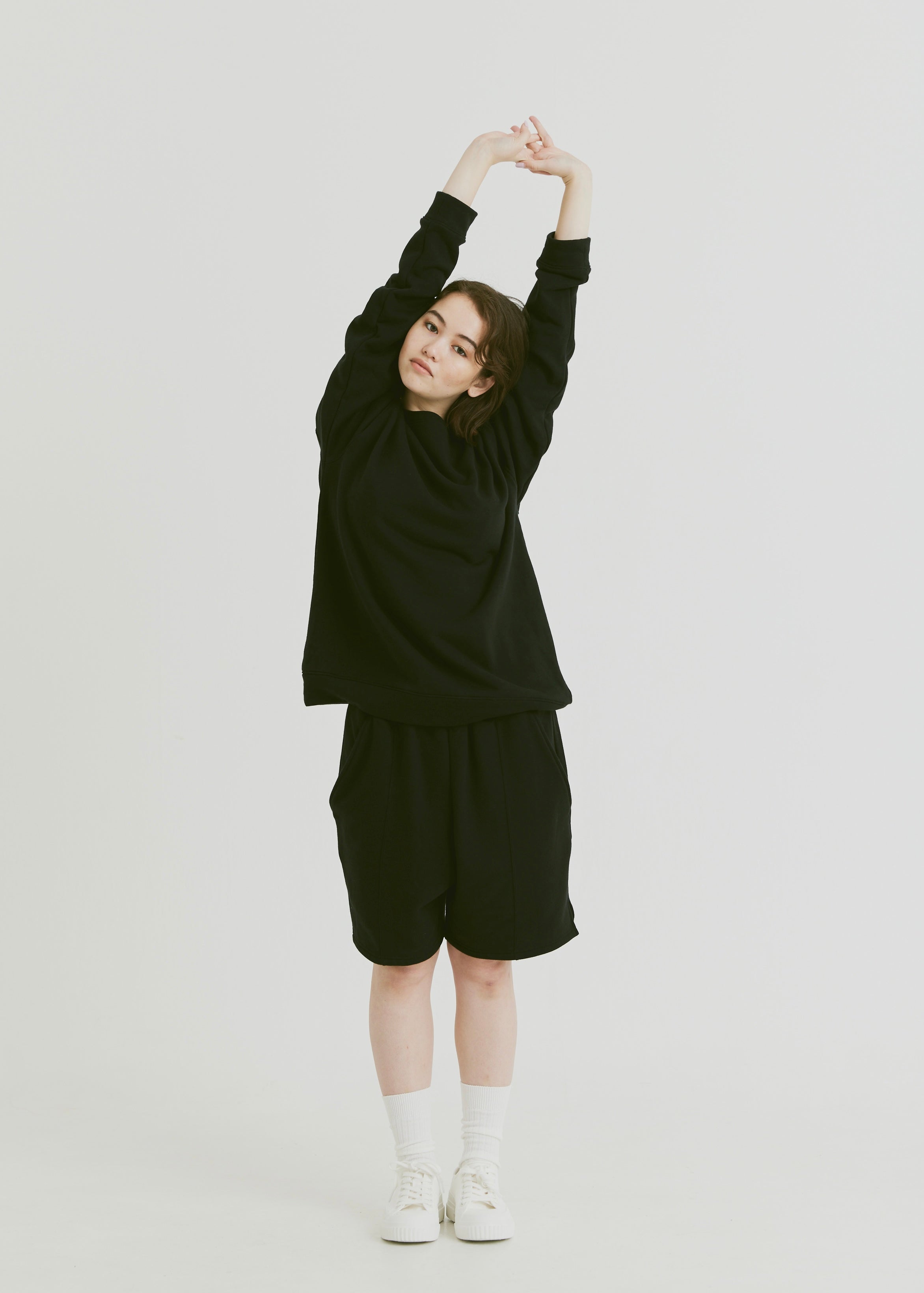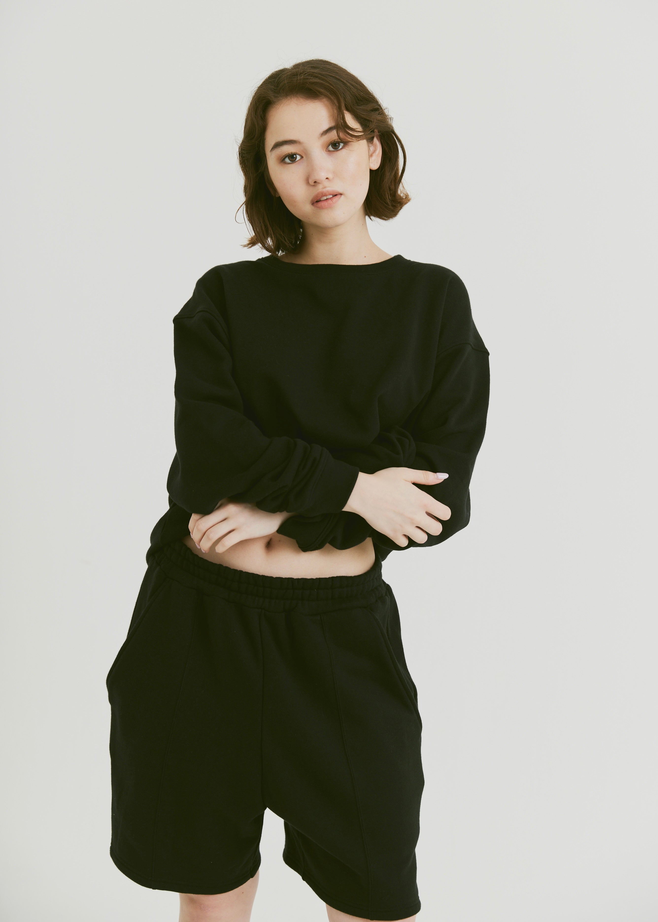 カジュアル度が高いスウェットショートパンツにきちんと感とメリハリをつけて、挑戦しやすいアイテムに仕上げました。