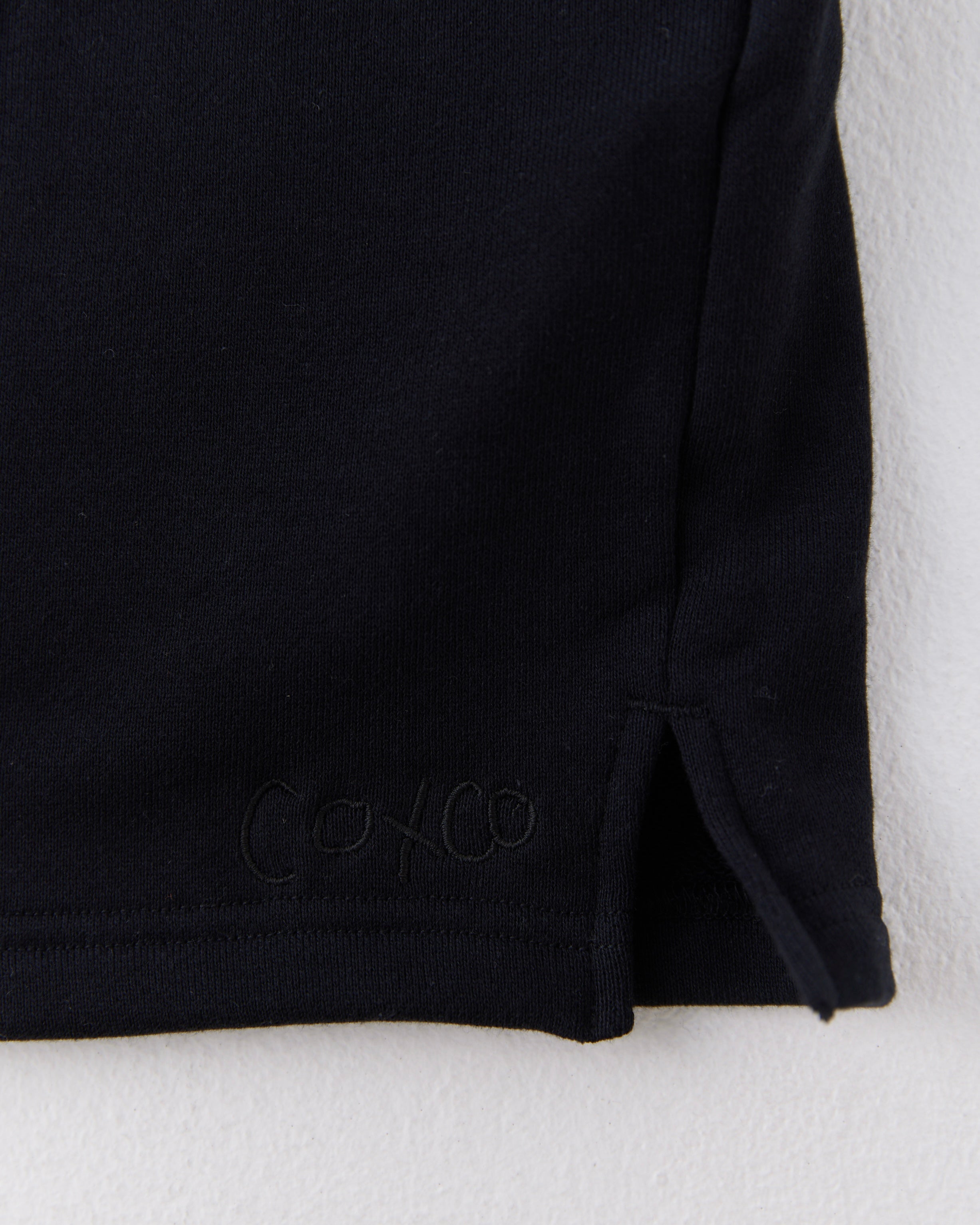 オーガニックコットン100%の柔らかい生地で製作した、大人が綺麗に履けるスウェットショートパンツ。左下に生地と同色の「coxco」刺繍、ヒップのタグがポイントのアイテムです。刺繍とタグの文字は、連携NPO団体「DEAR ME」でサポートしているフィリピンの女の子によって描かれています。