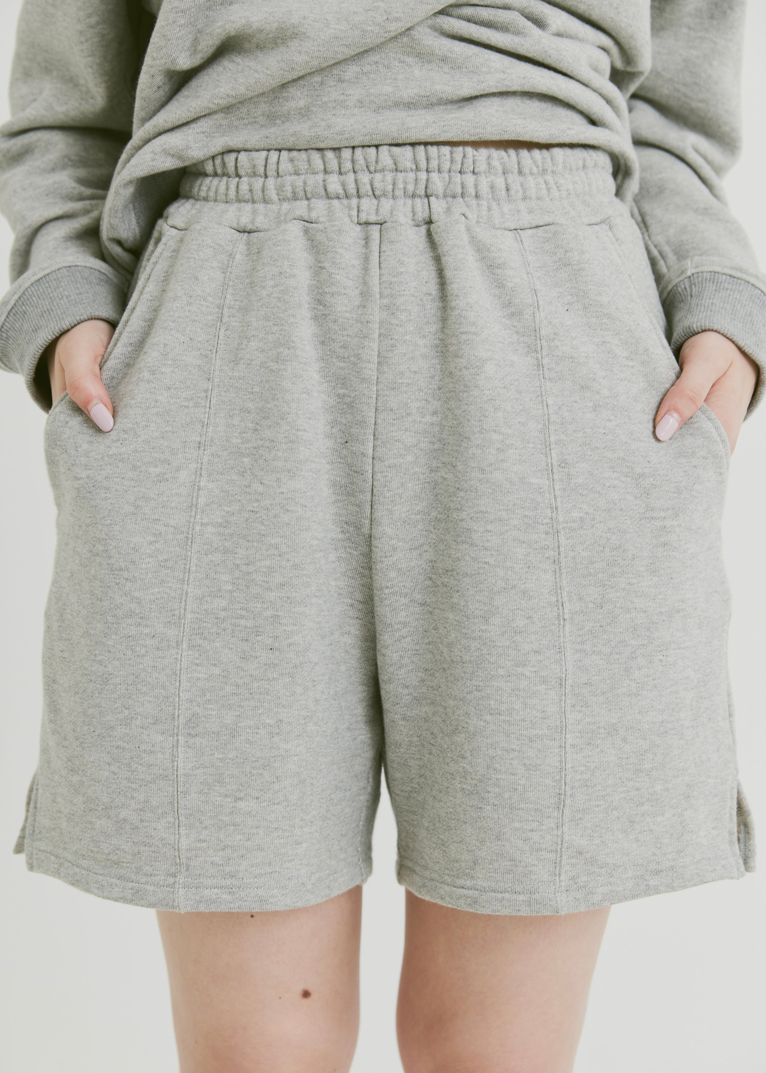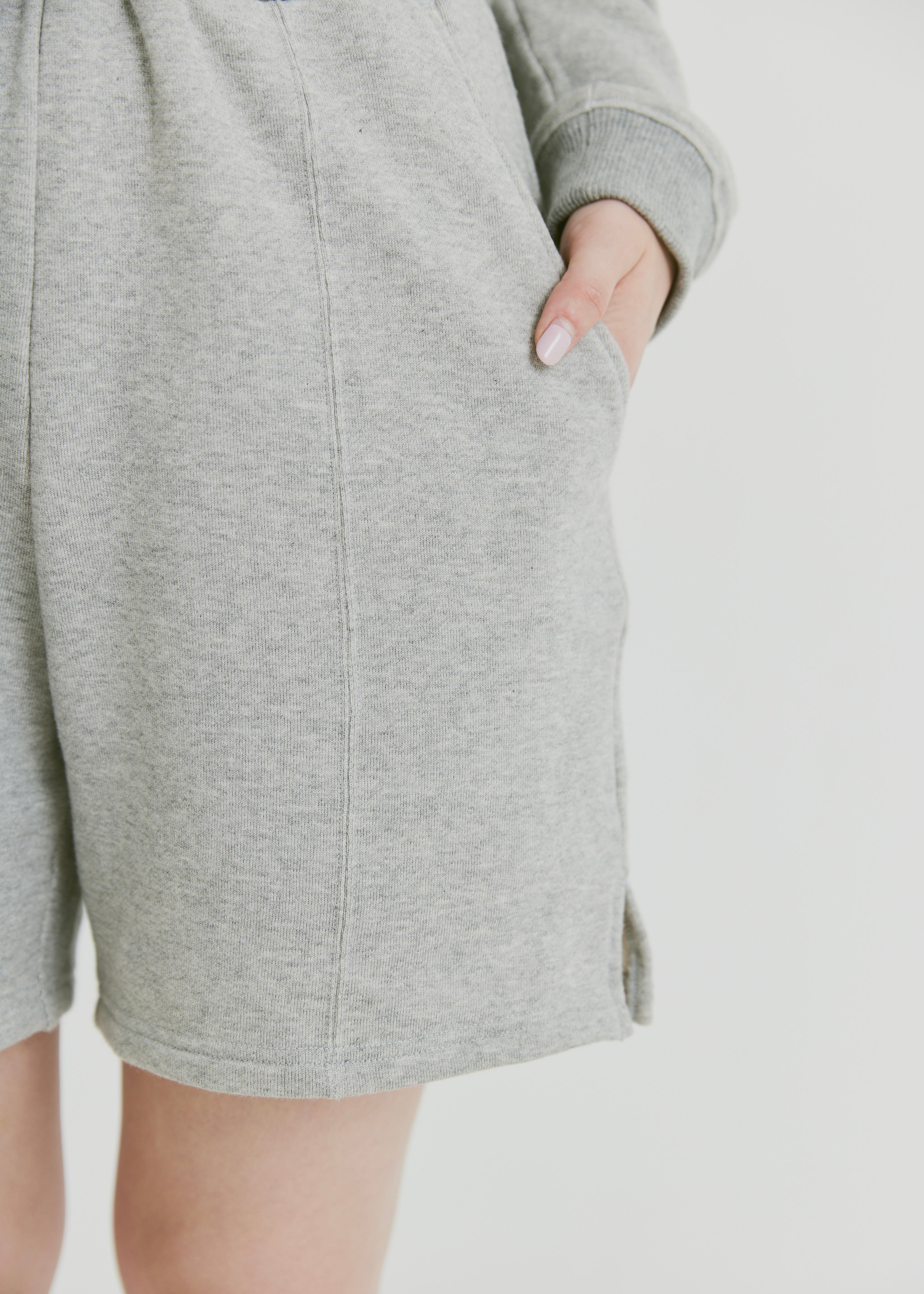 カジュアル度が高いスウェットショートパンツにきちんと感とメリハリをつけて、挑戦しやすいアイテムに仕上げました。