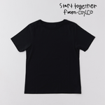 This T-shirt is made of 100% organic cotton. The key features of this item are the "coxco" embroidery on the left chest in the same color as the fabric, and the tag on the back. The embroidery and the tag were drawn by a girl from the Philippines who is supported by the affiliated NPO "DEAR ME."