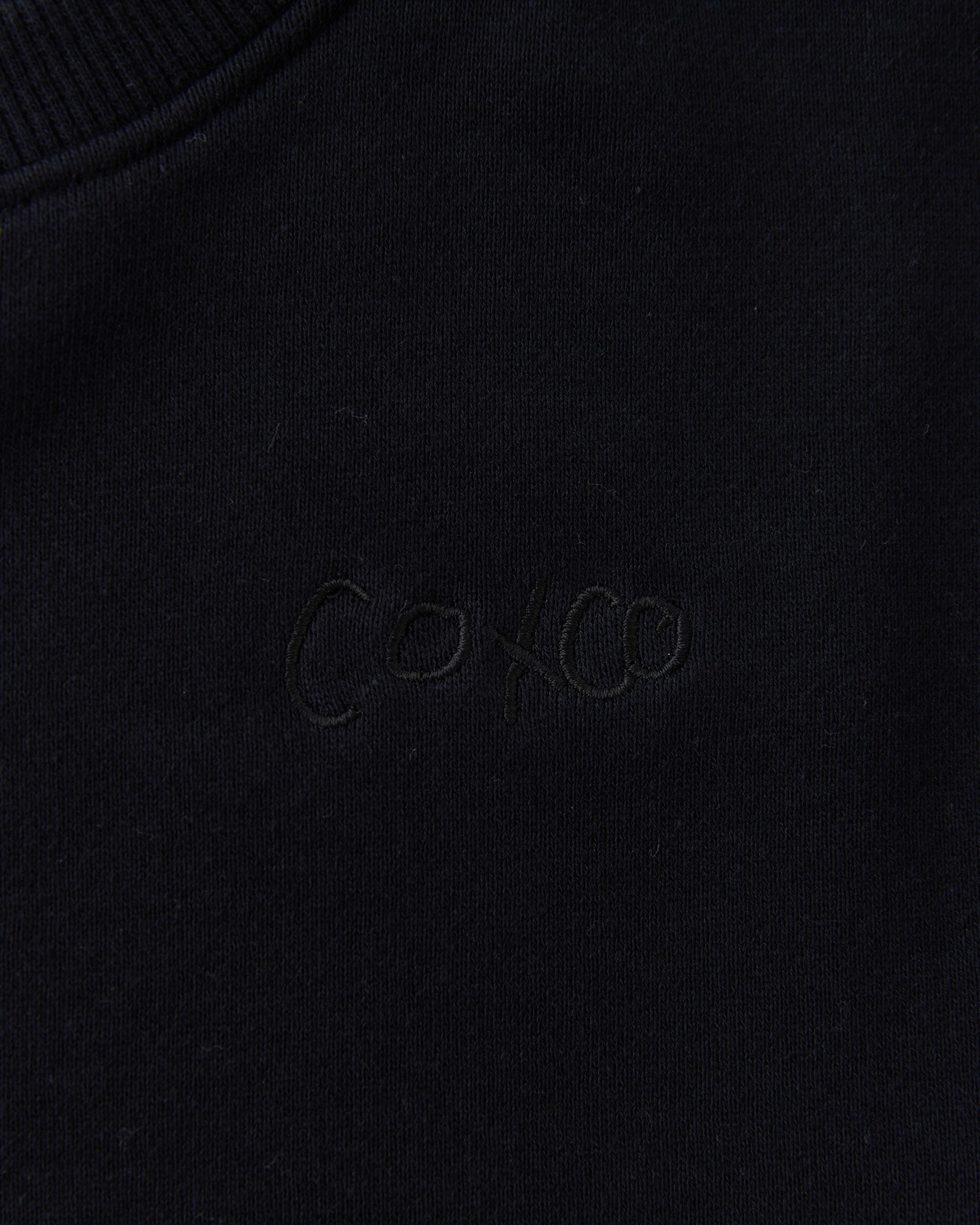 A soft-to-the-touch pullover that can be worn in any situation. The key features of this item are the "coxco" embroidery on the left chest in the same color as the fabric and the tag on the back. The embroidery and the tag were drawn by a girl from the Philippines who is supported by the affiliated NPO "DEAR ME."