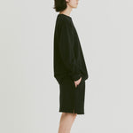 The overall silhouette and the width of the sleeves are relaxed yet not too wide, giving an elegant impression. The opening and curve of the neckline have been neatly finished.