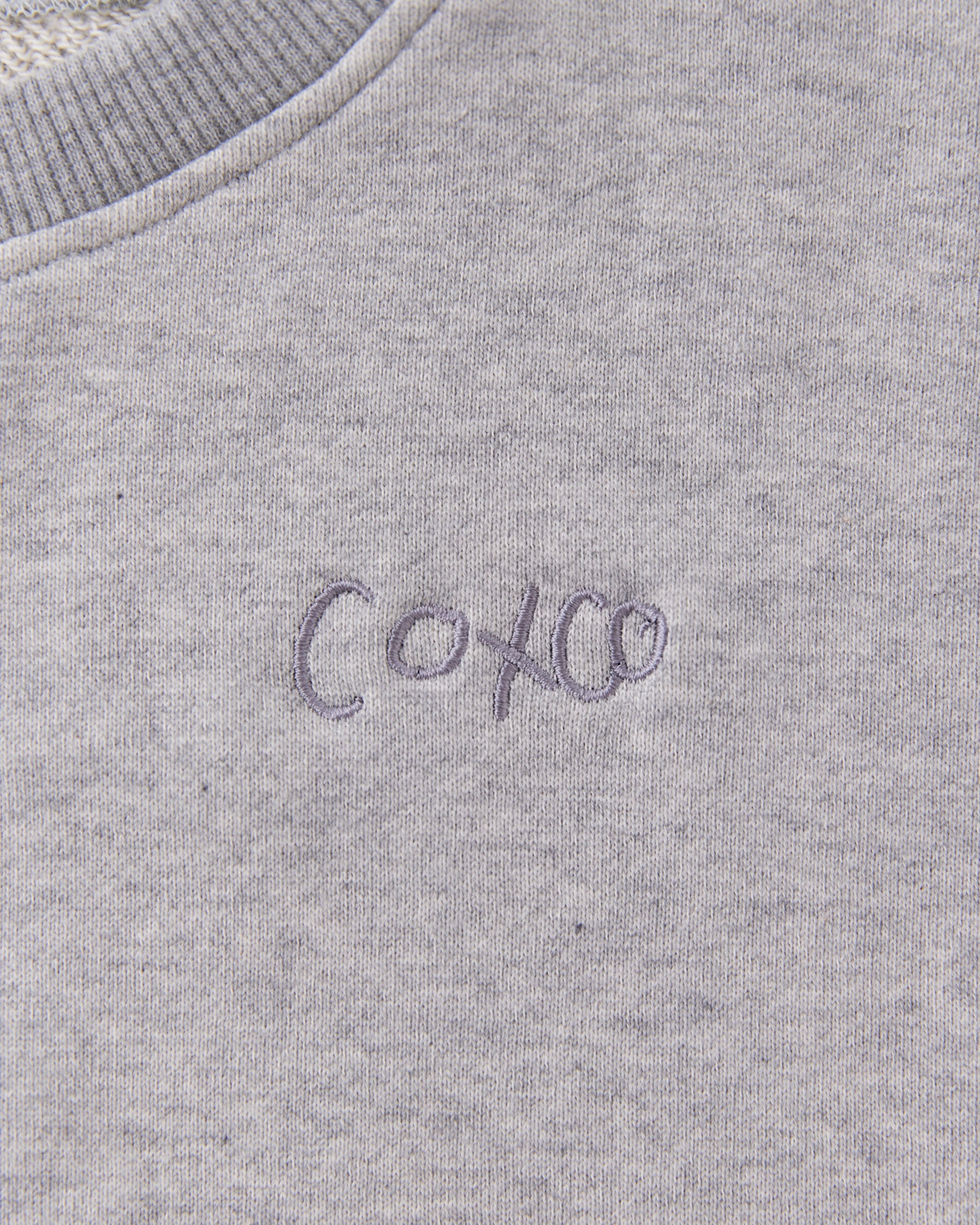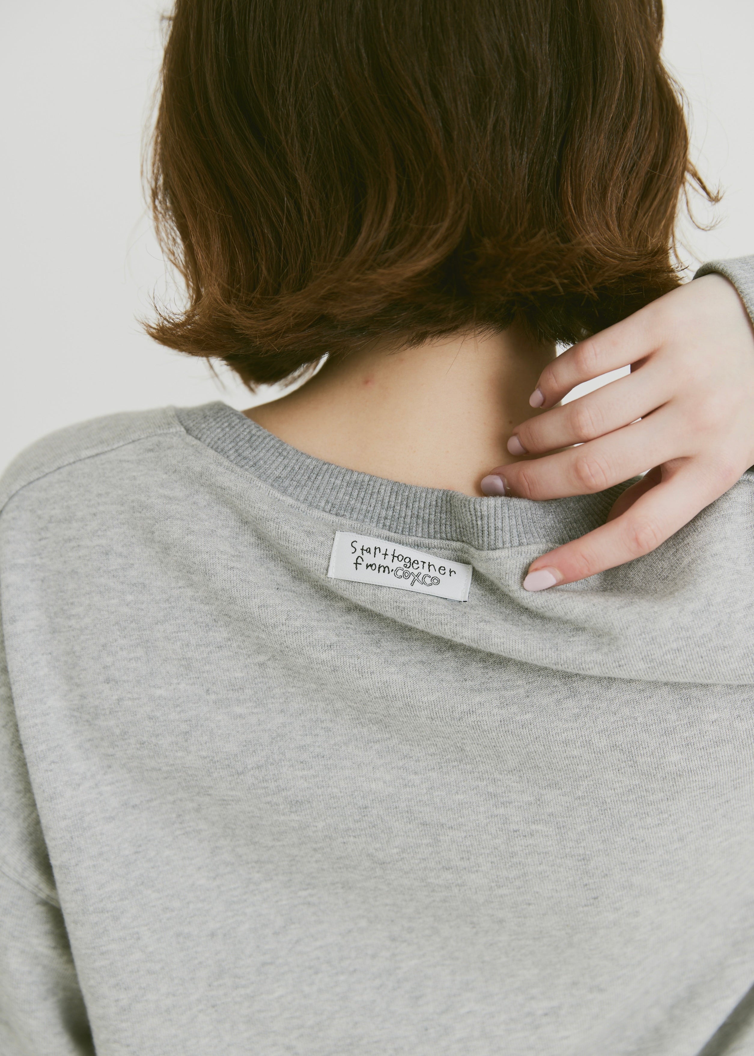 A soft-to-the-touch pullover that can be worn in any situation. The key features of this item are the "coxco" embroidery on the left chest in the same color as the fabric and the tag on the back. The embroidery and the tag were drawn by a girl from the Philippines who is supported by the affiliated NPO "DEAR ME."