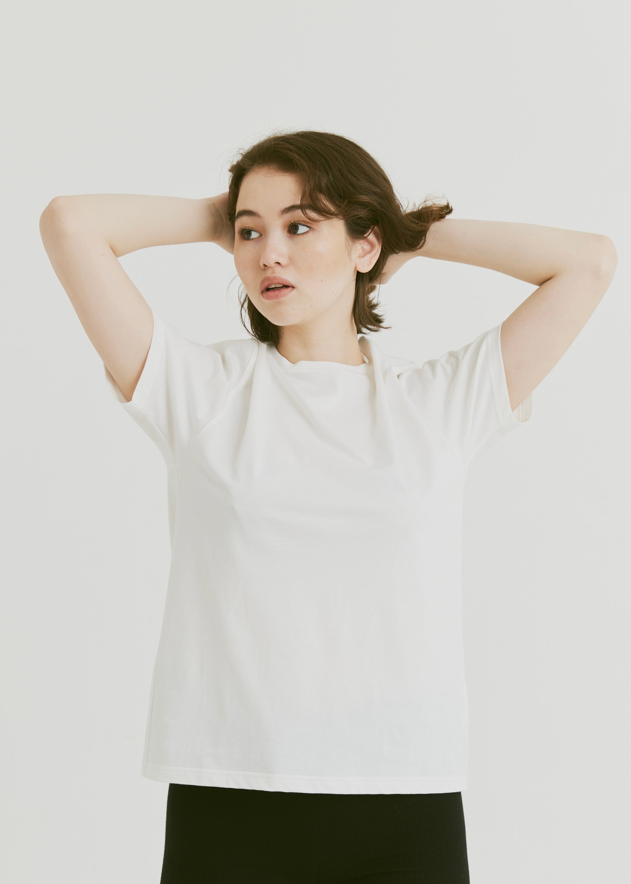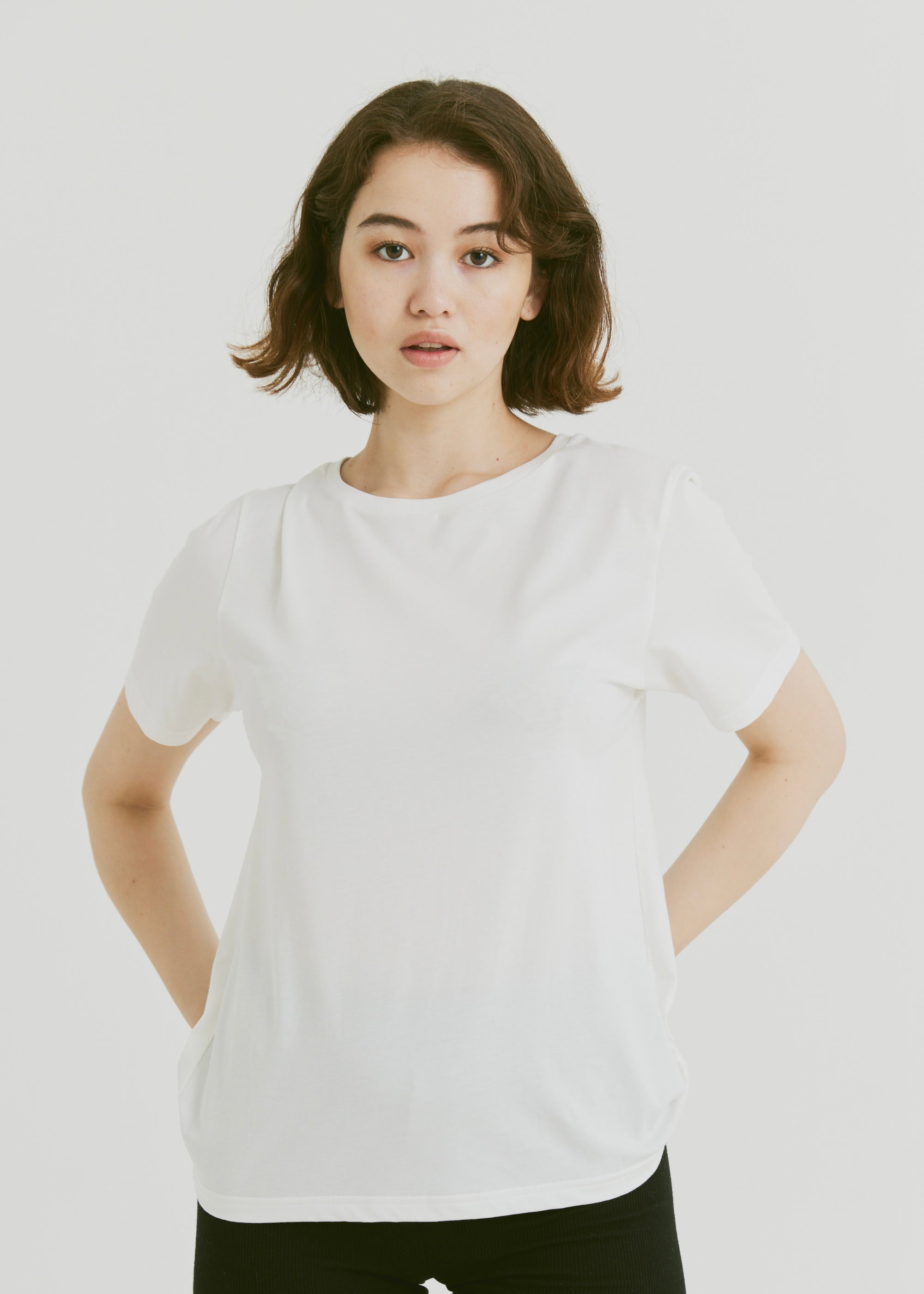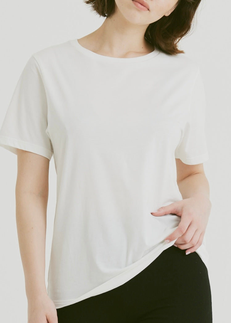 A soft-touch, elegant T-shirt that can be worn in any situation. Even if you wear it loosely in a larger size, it won't look too casual, and it can be worn alone or as an inner layer under a jacket.