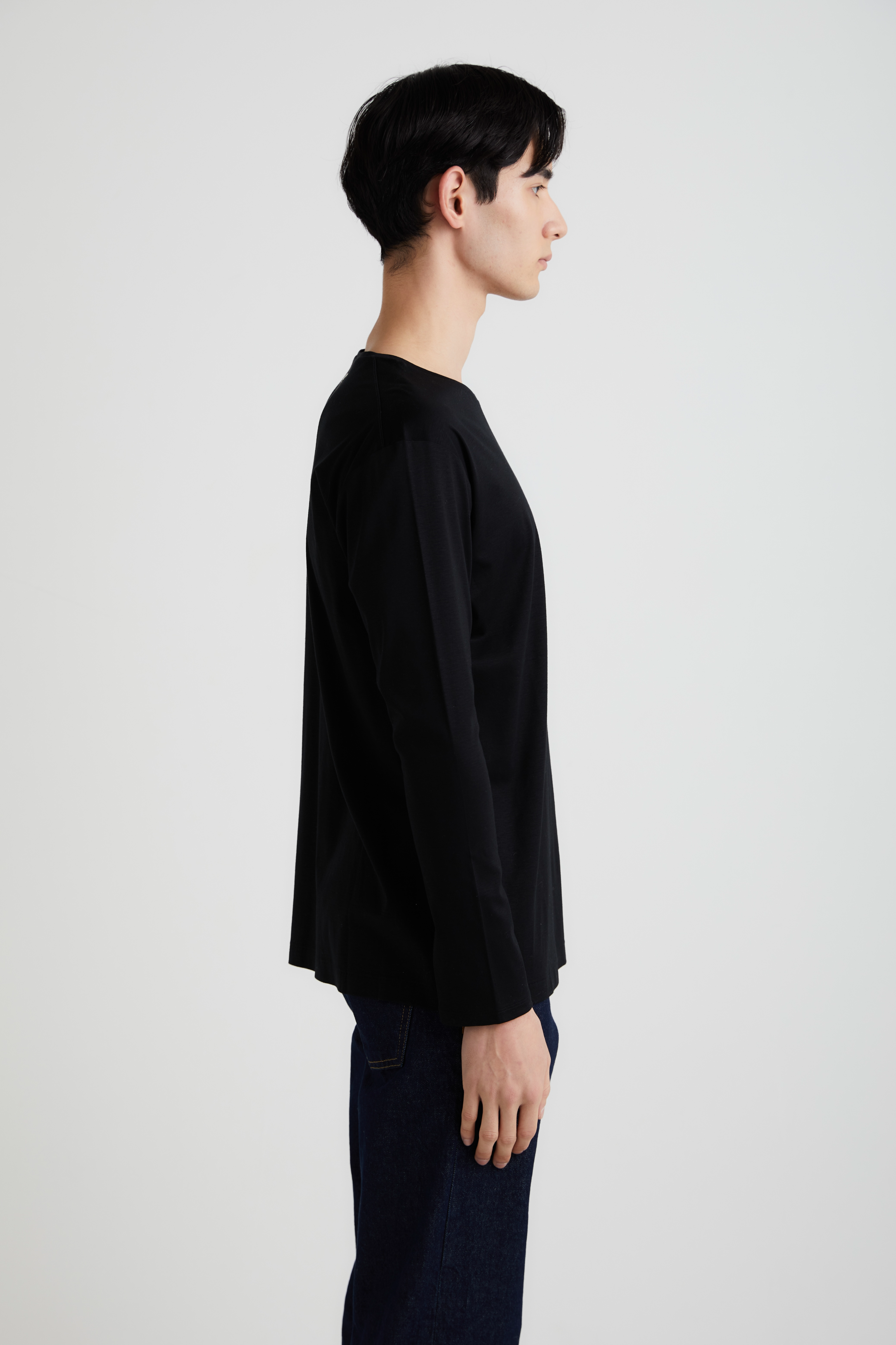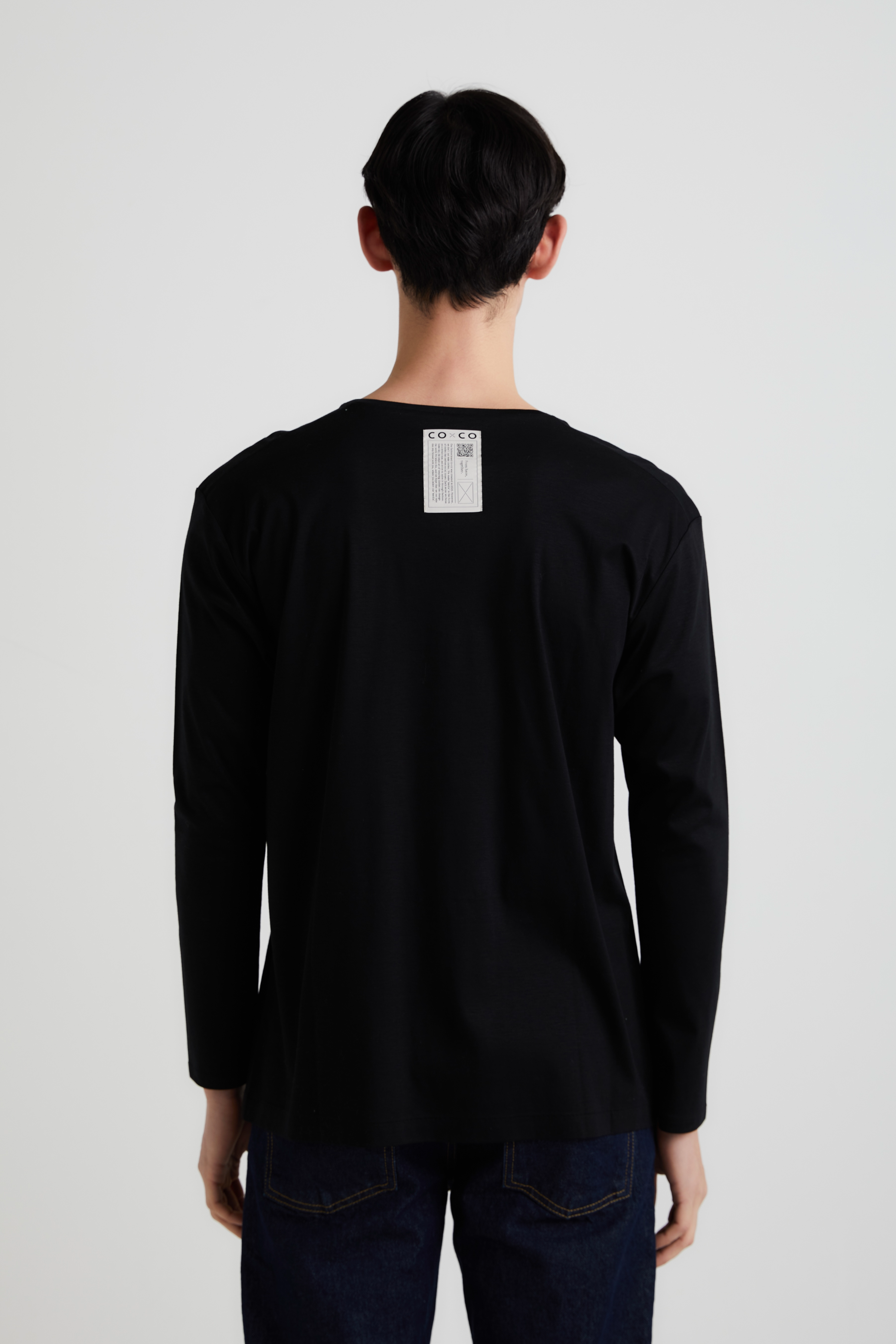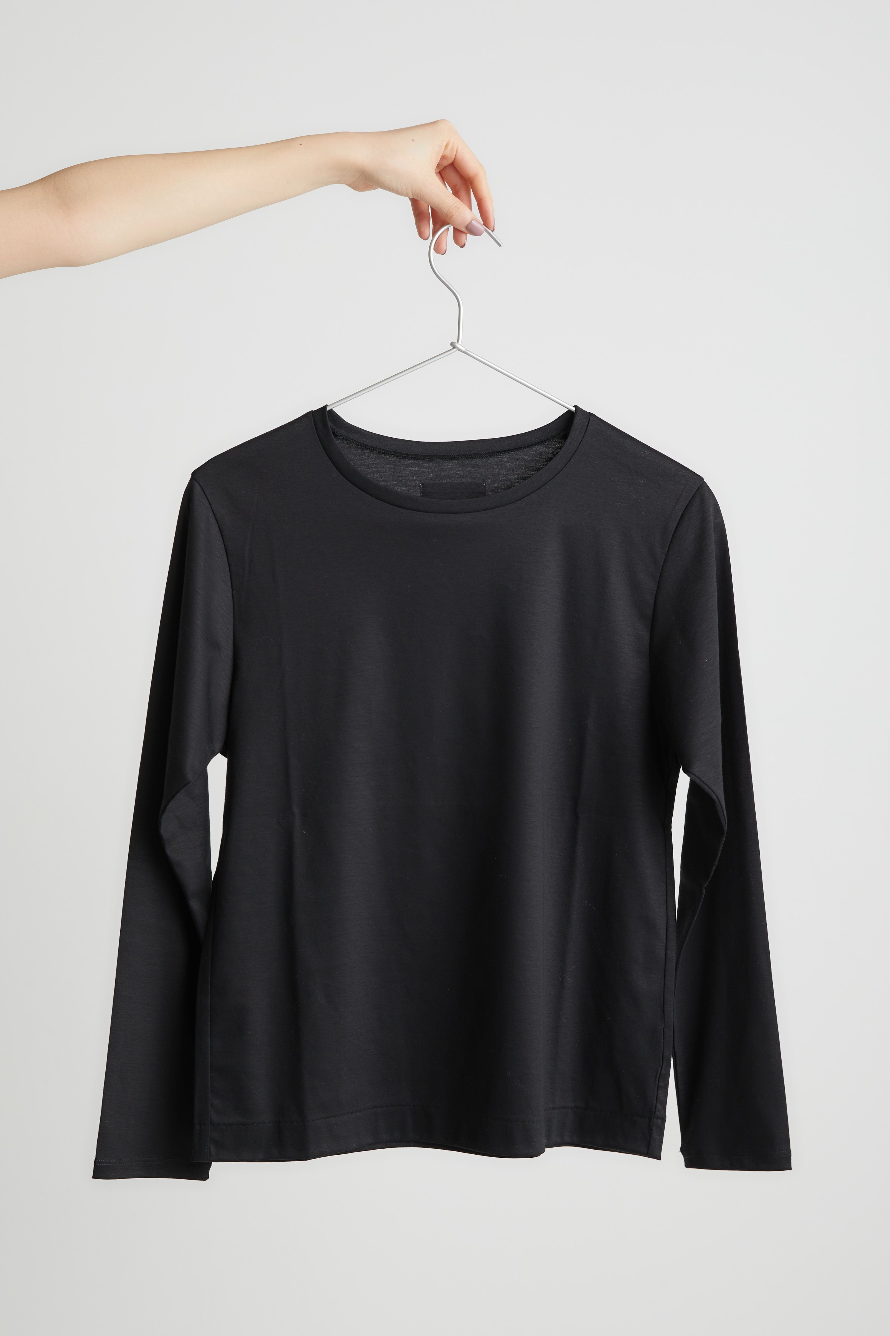 A long T-shirt made with a focus on the fabric, sewing production process, and silhouette.