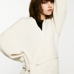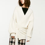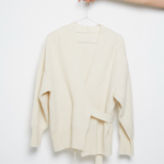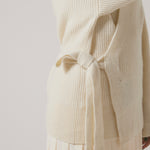 This knitwear is made from recycled yarn scraps, lint, and old clothing, processed and upcycled using machines like a yarn splitter and yarn splitter. It's estimated that approximately 120,000 tons of scraps are generated annually, and this recycled knitwear effectively utilizes scraps that would otherwise be discarded. The belt can be worn in a variety of ways.