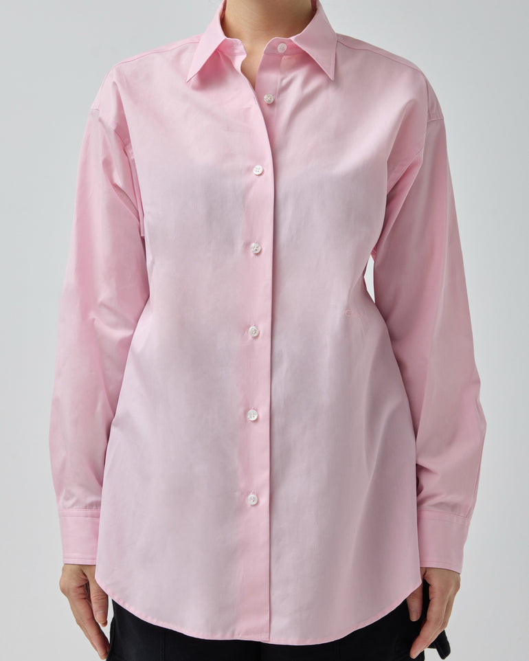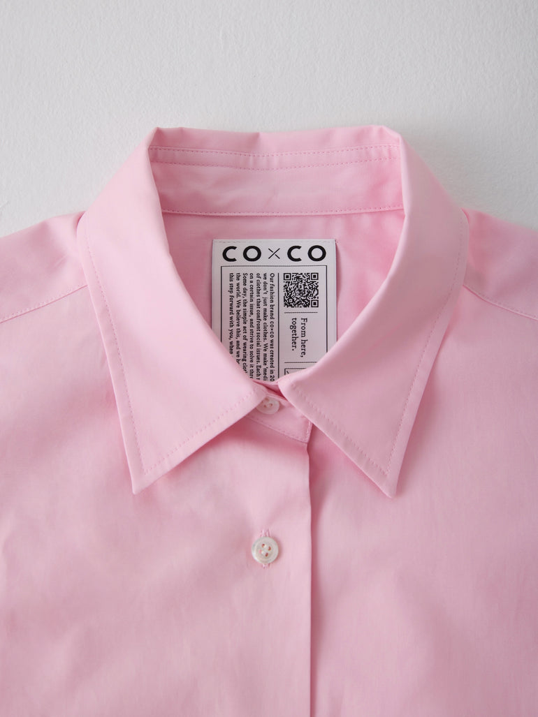 The material is a mix of Orcot and polyester derived from recycled PET bottles, which was carefully selected from among many blouse fabrics. It has just the right amount of firmness and density to accentuate the silhouette of the ribbon and sleeves. It has the advantage of being neat and wrinkle-resistant and can be washed at home.