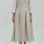 デザインのポイントでもある脇の調整ベルトで、フィット感が調整できて様々な体型の方にもご着用いただけます。キュッと絞るとフレアシルエットが強くなり、緩くするとストンとしたリラックス感がでます。